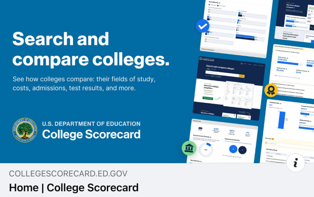 To make informed comparisons, students can turn to the U.S. Department of Education’s College Scorecard (https://collegescorecard.ed.gov). This free tool offers data on tuition, financial aid, graduation rates, average debt, and post-college earnings (Institute for Higher Education Policy [IHEP], 2023). Rather than relying on marketing materials or reputation alone, families can use real figures to guide decision-making.